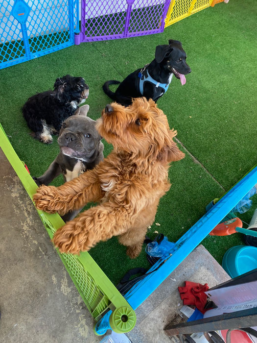 The Collar Club exist because of a high anxiety puppy named Luckie. I'm Luckie's mama, and my name is Bree. Luckie was attached to me because when I adopted him at 4 weeks I was on FMLA. I bottle fed him, carried him around in diapers, and changed his clothes everyday. So when I went back to work he didn't know what to do with himself. He would make himself sick waiting for me. I had to make a decision to chase my career, or choose my dog. I chose Luck. Since pitties get a bad rap, I wanted Luckie to be social and have all types of doggy friends. So I quit my corporate job and started The Collar Club. He has all the friends, and all the pups that come to the club get a piece of that love!